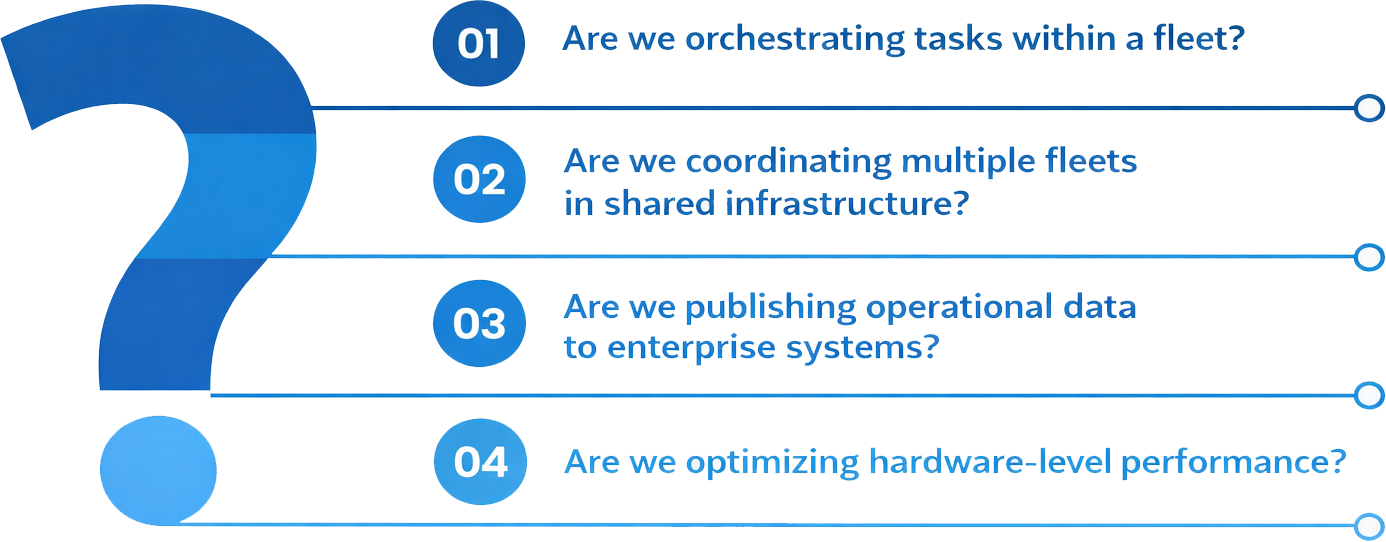 Disconnected Systems Robots and systems operate in isolation, preventing seamless coordination across operations.